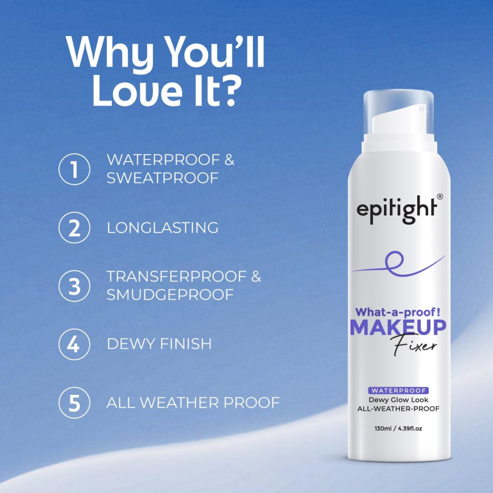 With Epitight Makeup Fixer, you're ready for anything. Your makeup is waterproof, sweatproof, transfer-proof, and drama-proof. Flaunt your flawless, dewy look with confidence, all day long.