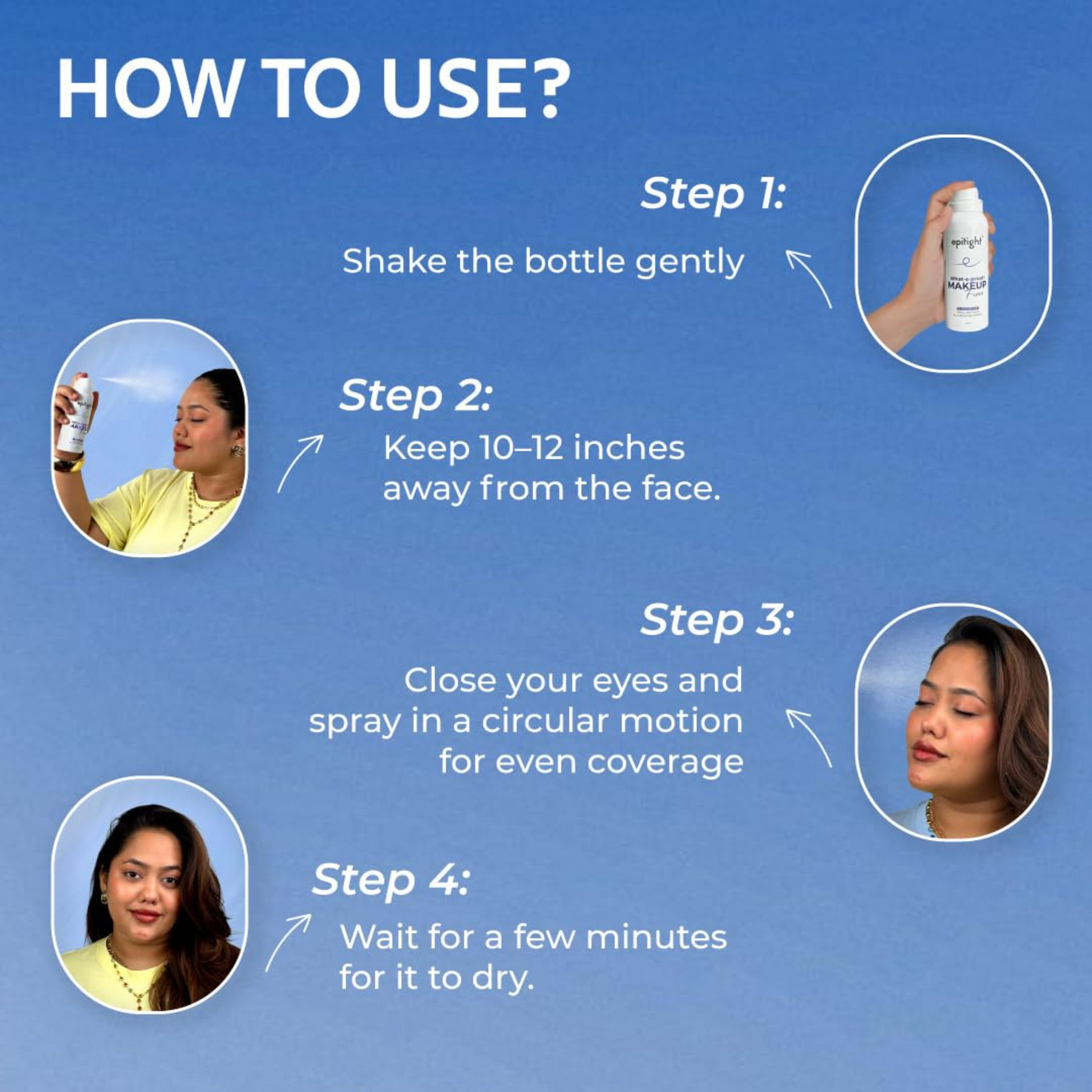 - Close your eyes and spray in a circular motion for even, all-over coverage.